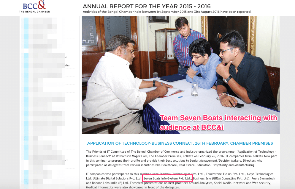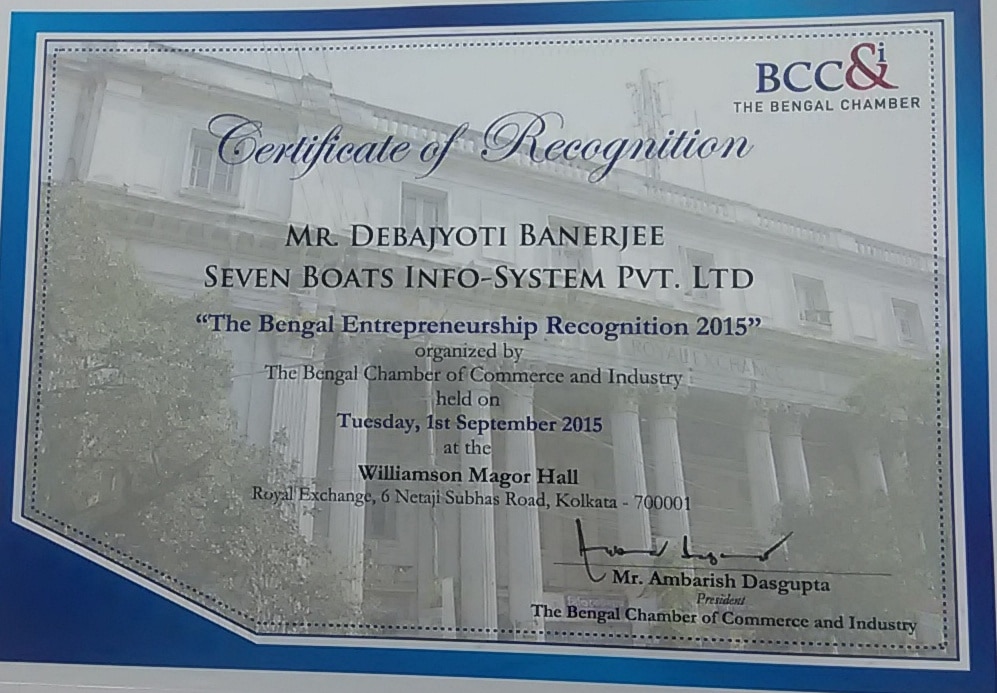 - Seven Boats has been awarded with ‘The Bengal Entrepreneurship Recognition 2015’ by Bengal Chamber of Commerce