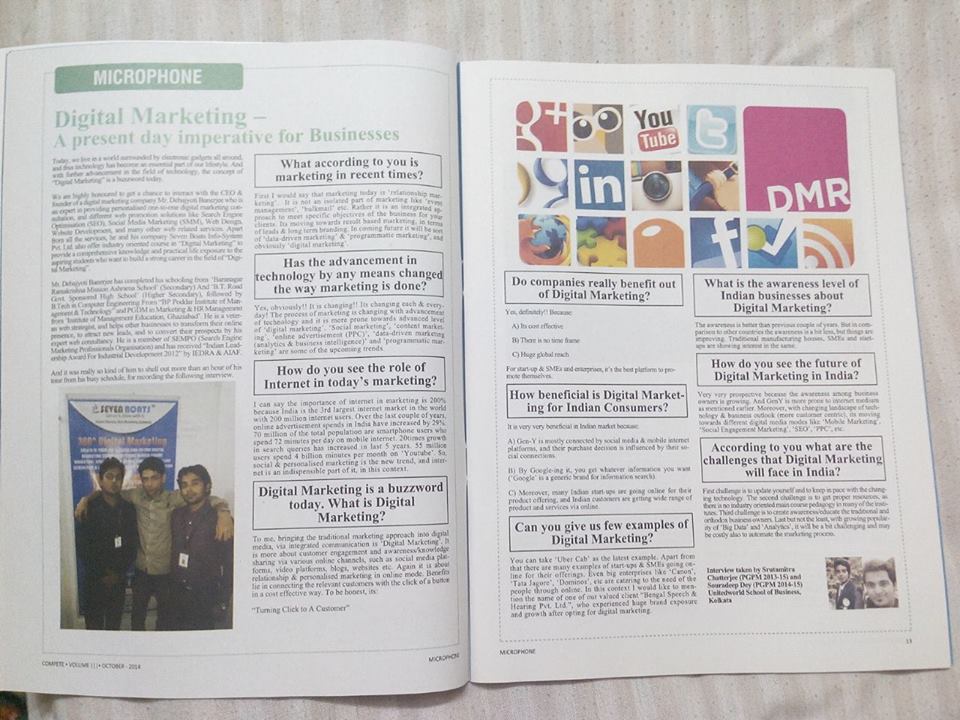 - Seven Boats Info-System Pvt. Ltd.has received ABP news powered CMO Asia & World Marketing Congress Kolkata Best Brand Award ( Digital Marketing People’s Choice 2019 )