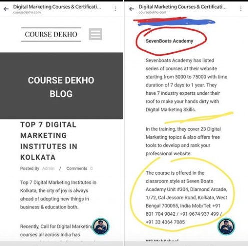 Seven Boats is in Digital Marketing Field since 2011 (Both Digital Marketing services & training) having offices in India & Cambodia with global client-base (Smilepharm -Cambodia, Beijing Shougang Engineering – China, Dezzine – Hong Kong, Sixth Dimension Learning – Canada, Global Worldwide Logistics – Dubai, Tanushh – Dubai, Hola Toys – Australia, RENE, PRAN RFL Group, Elite Footwear, Keya Seth, Usashi Real Estate, Evanie, DN Newtown, AVR group of hotels, Shree Cement, Saraswati Online Academy, Swami Vivekanada Institute of Technology & many more) & 40,000+ students across the globe (Both online & Classroom Training).