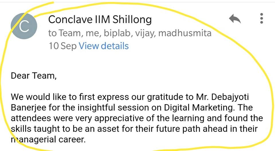 - Invited for conducting Digital Marketing Awareness Camp at Dumdum Motijheel Girls’ High School, Kolkata