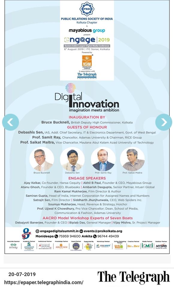 - Invited as trainers by Public Relations Society of India, Kolkata for Engage 2019 Digital Summit