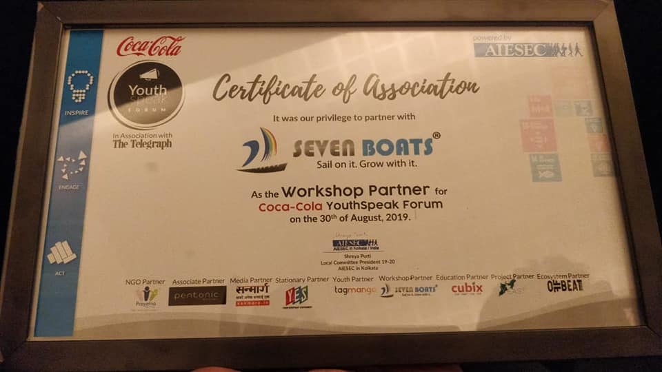 - Invited by Coca-Cola AIESEC Youth Speak Forum at ICCR Kolkata