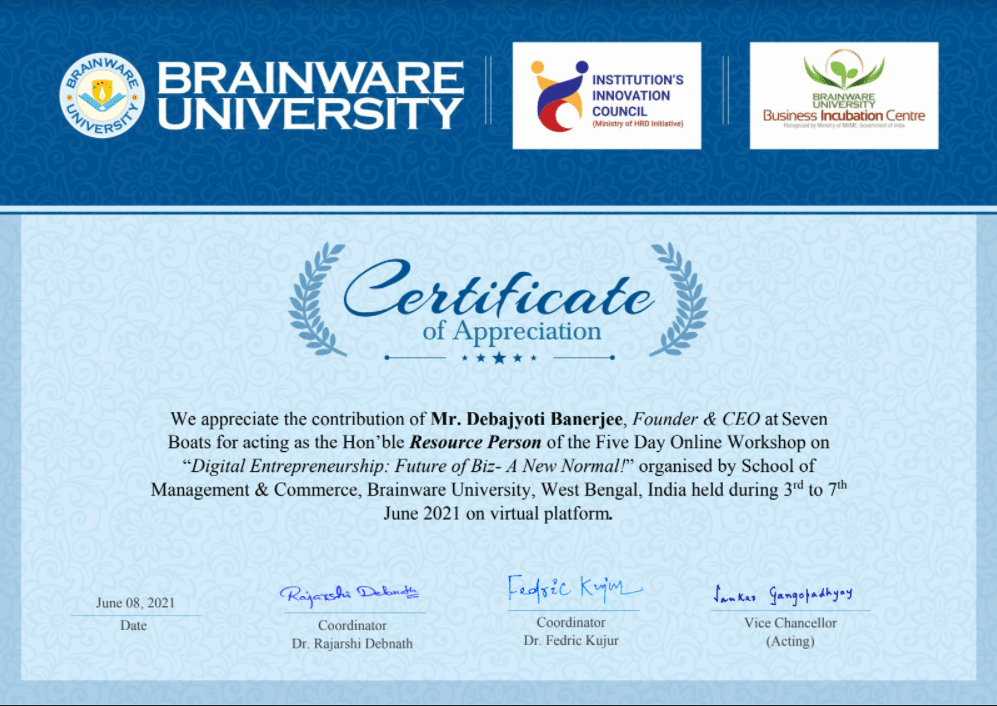 - Seven Boats & Brainware University join hands to provide Value Added Course (VAC) on Digital Marketing.