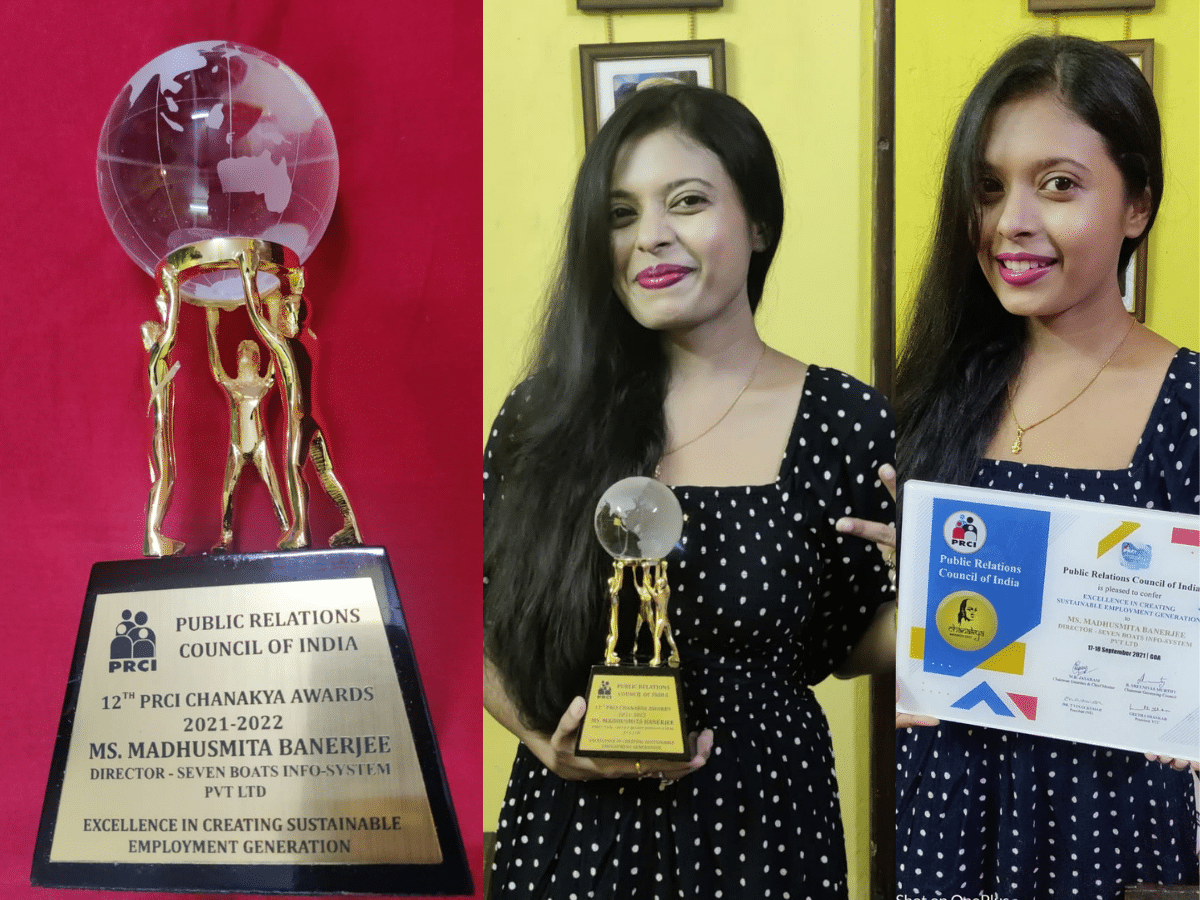 - Madhusmita Banerjee, Director of Seven Boats Info-System Pvt. Ltd. & Co-Founder of Seven Boats Academy has received prestigious PRCI Chanakya Award 2021-22 for sustainable employment generation.