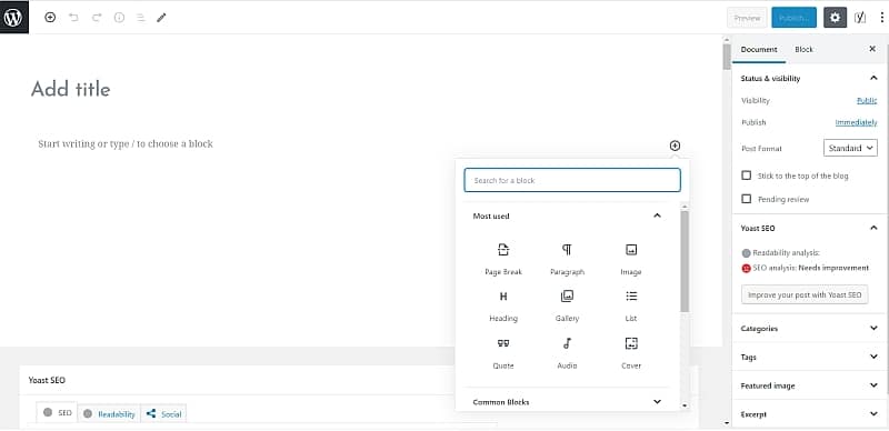 Once you are done with the theme installation for your blog, the next step comes installing essential plugins for your blog. Few of the essential plugins are – Akismet (for spam protection), Yoast SEO or Rank Math or All in One SEO (For SEO), Contact Form 7 (Contact form), WP Fastest Cache or W3TC or WP Super Cache (For Page Speed), MailChimp for WordPress (For email subscription), WordPress Popular Posts, Contextual Related Posts, Wordfence or Jetpack (For security), backWpup or vaultpress or updraftplus (For backup).