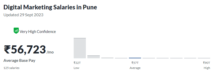 According to Glassdoor, the average salary for a Digital Marketing professional in Pune is ₹56,723 per month. However, this can vary depending on a number of factors, including experience, skills, and the specific role.