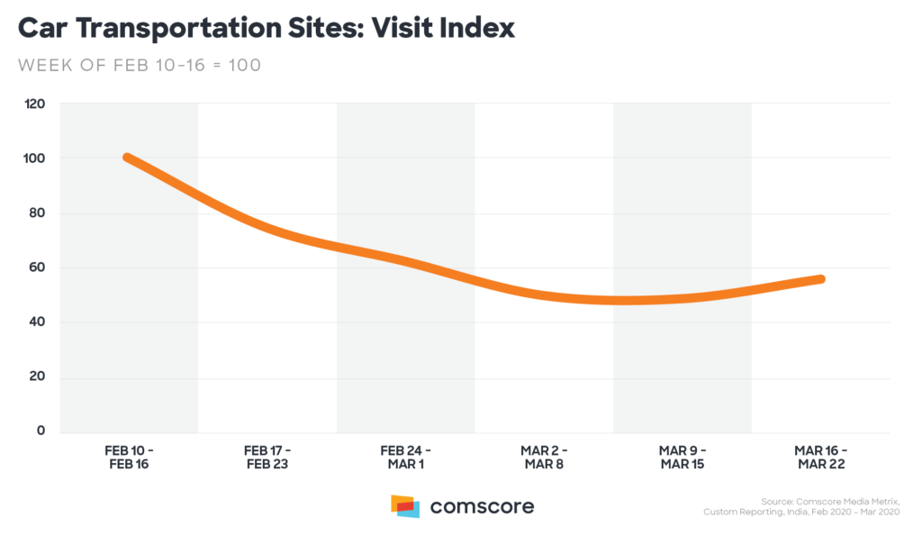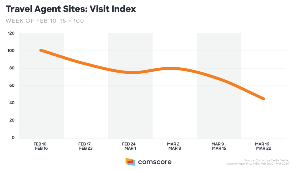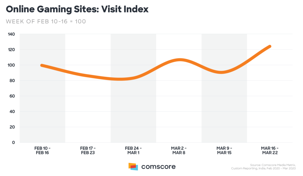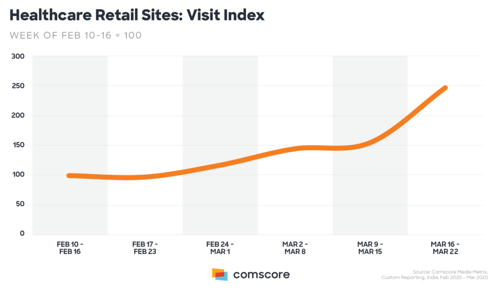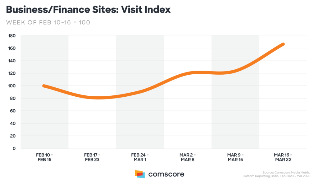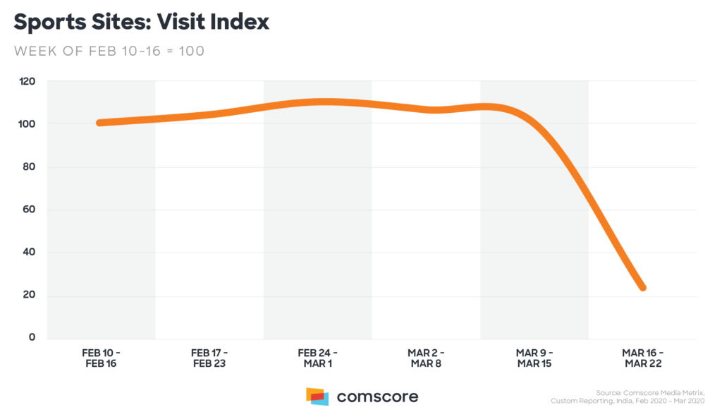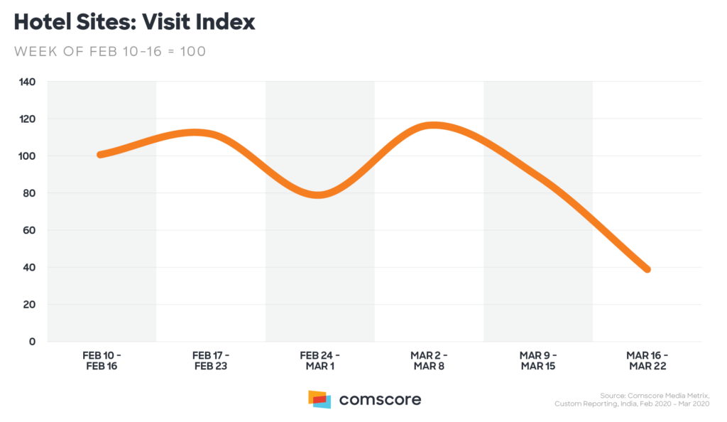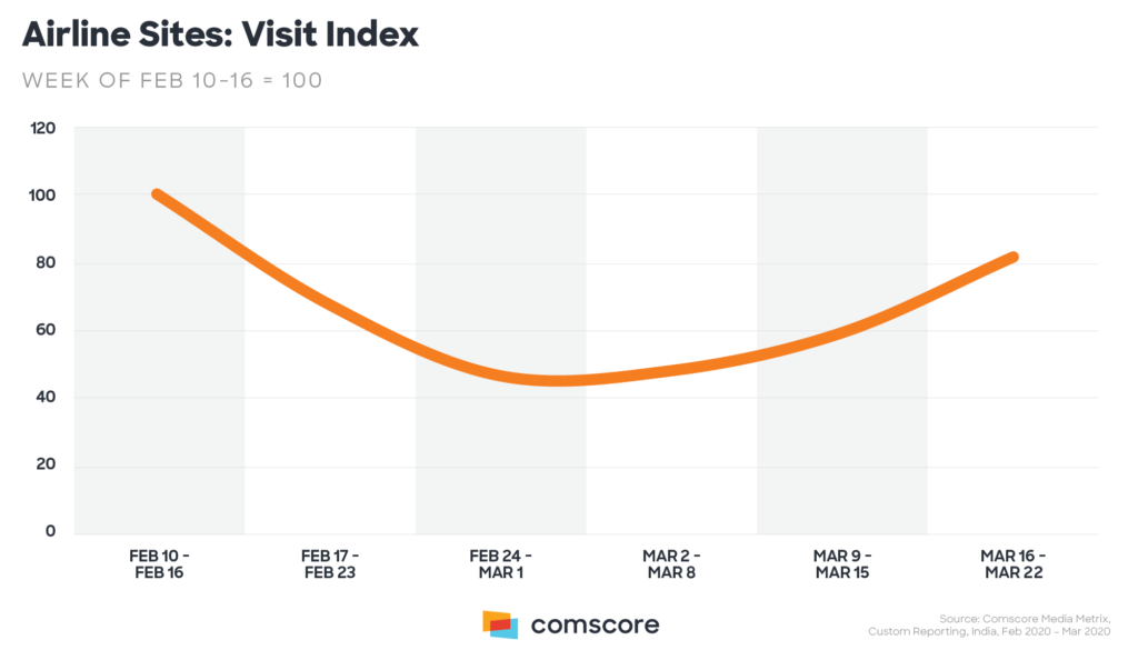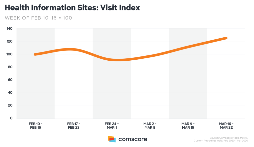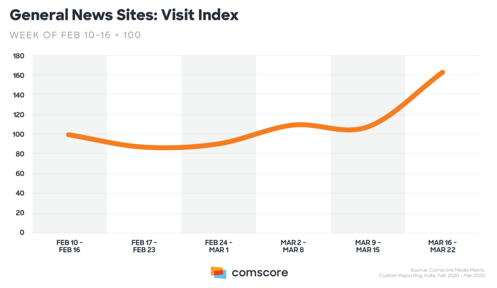 As per comscore, during corona virus / covid-19 peak in 2020, the digital media consumption in India has significantly increased for online news sites, business or finance sites , health information sites, healthcare retail sites, online gaming sites, web based streaming sites & online free education sites, where as it has seen sharp drops in travel sites, hotel sites, airlines, car transportation sites & sports sites .
