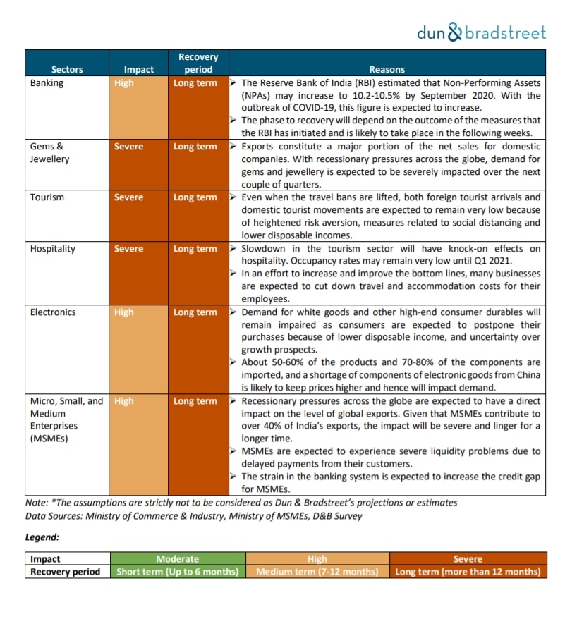 As per Dun & Bradstreet, find below the industry wide impact of Covid-19 in India along with tentative recovery timeline. Businesses should be well prepared with the contingency plan and move towards a sustainable plan with the help of digital marketing strategies.