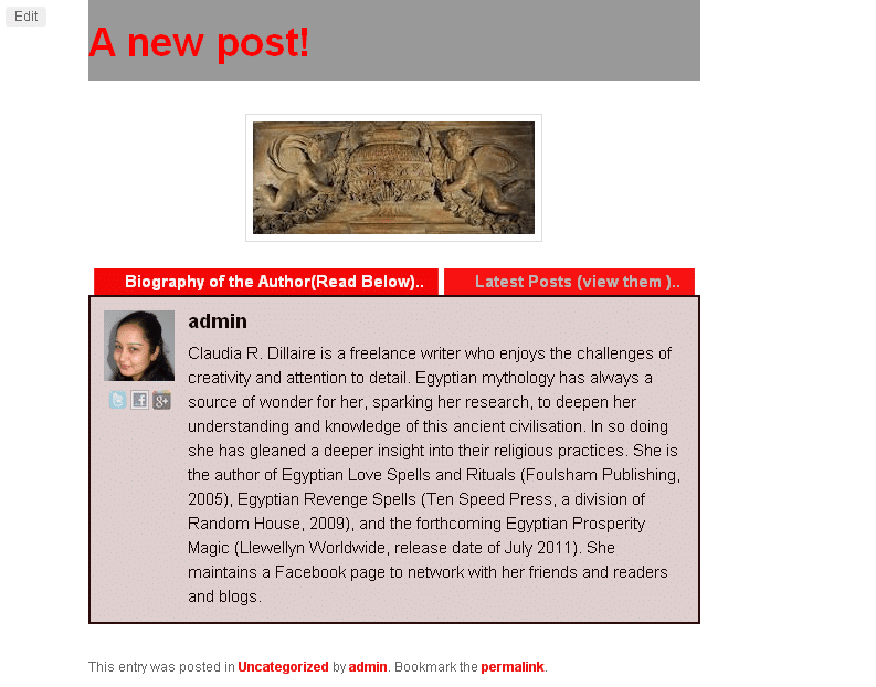 Adds an author box after your post contents.The box contains author’s avatar,name,post count,site link,personal description and Email. This plugin will allow you to place author bio in author url above all posts written by the author. This plugin works best with the twenty eleven theme.